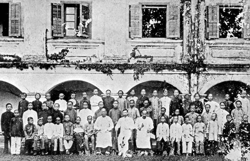 由基督教長老教會所設立的長榮中學和長榮女中,事權台灣歷史最悠久的中學。兩校成立的時間先後址差兩年。 長榮中學最早名為「長老教會中學」(Presbeterian Middle School),是1885年9月21日,在現今衛民街、博愛路口一帶的二老街口俯東巷尾,與洪公祠為鄰的舊樓醫館內成立的,起初只有十個學生。 1894年初,該校遷到新樓旁新建的校舍上課(現台南神學院內),這是1906年的師生合影,中間坐太師椅的是校長費仁純(Frederick R. Johnoson)。(撰文:詹伯望)