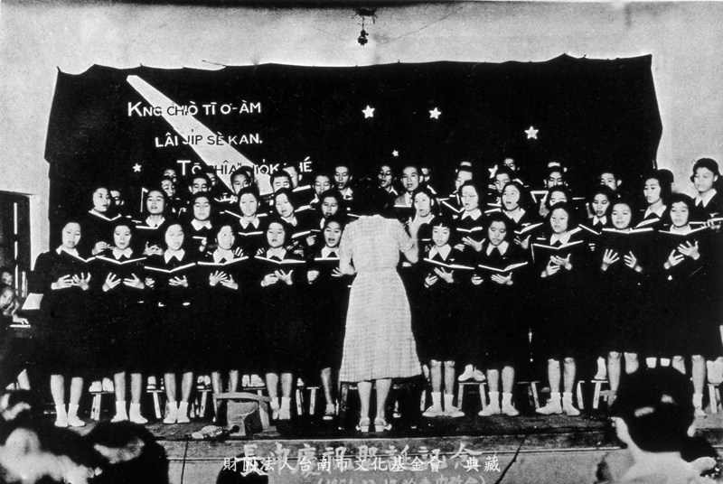 這是1951年耶誕節,長榮中學和長榮女中合組的聖歌隊,在東門教會合唱的鏡頭。(撰文:詹伯望)