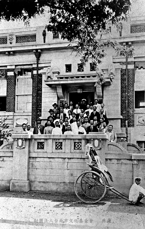 出自《台灣之旅─全國圖書協議會員台灣視察》日本國家圖書協議會員至台灣各地名勝視察,所留下的紀錄照片。與C03B09-006同。台南市立圖書館前身為台南市財團法人於民國8年設台南圖書館附屬圖書館於吳園,但場地較小,無法容納多人閱覽。至民國10年時,由辜顯榮捐款日幣三萬,於其側(公園路60號)造樓並購書。同年年底改隸台南市役所,改稱「台南市立台南市立圖書館」。光復後更名為台南市立圖書館,民國64年改建新館於公園北路現址,原址連同後方之市立游泳池及四春園一併拆除後,改建成遠東百貨公司。(資料來源/《府城今昔》周