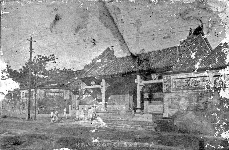 1914年5月11日,「台灣總督府台南中學校」(現台南二中的前身)奉准成立,臨時借用兩廣會館(現南門路刑警隊一帶)充為校舍。兩廣會館的建築精美,迴異於閩南式的風格。在日據初期,由於台南缺乏較大的聚會、飲宴所在,所以日本人都會在此舉辦重要活動,斑駁的照片裡可見幾名學生正拾階而上。(撰文:詹伯望)相關說明請見《重道崇文》83頁說明。