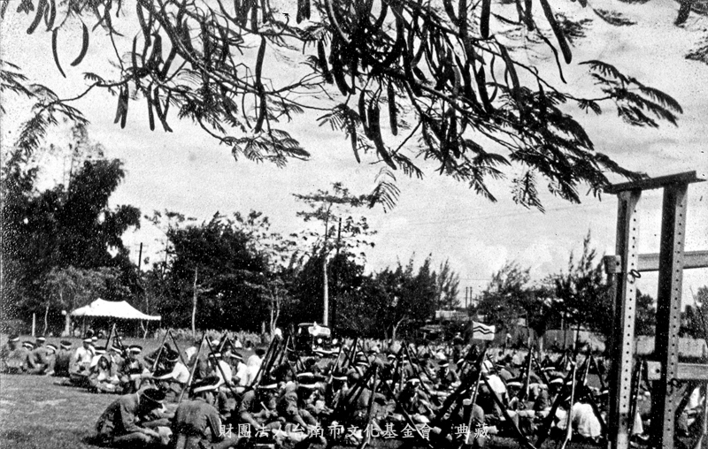 1938年,台南州立台南第一中學校學生,做長途行軍演習,遠赴嘉義一帶,不過,押隊的教官和老師卻是騎腳踏車的,顯然輕鬆多了。(撰文:詹伯望)