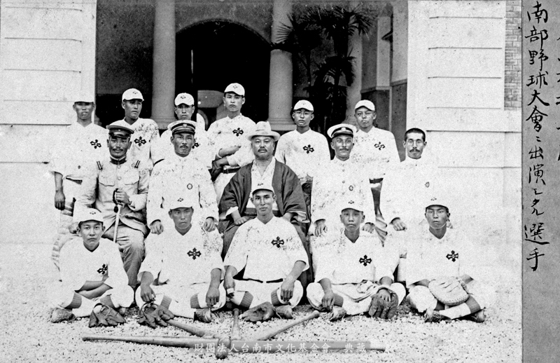 1917年10月,總督府台南中學校參加「南部野球大會」的選手,在該校主樓玄關前合影。該校的棒球水準相當不錯,1933年還差一點就獲得赴日本甲子園參加中等學校棒球賽的資格。 據第十六屆學生石垣次郎回憶,他們州立台南一中在台灣南部的預賽中,和嘉義農林學校遭遇,對方投手吳昌征擅投快速球,卻仍被他們打到,南一中遂贏得冠軍;誰知到台北爭奪台灣代表權時,嘉義農林學了乖,派出擅長慢速球的投手,令南一中一籌莫展,到第七局即因大雨停賽,終以二比五認栽,無法達成到日本出賽的夢想。(撰文:詹伯望)相關說明請見《重道崇文》142