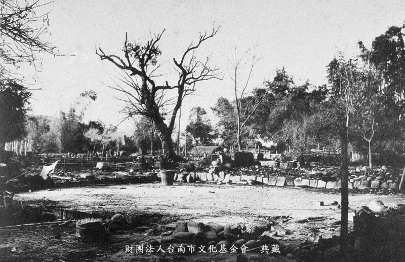 曾為抗日份子據點的竹圍庄,在遭日本搜查隊攻擊後的殘跡。出自大正5年所發行的《台灣南部匪徒討伐警察隊記念》。