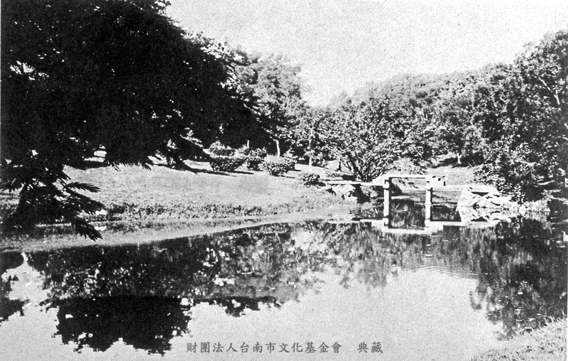 出自《台灣寫真帖》。建於大正元年(1912),至大正六年完工,又稱「大正公園」。園內之天然湖泊因呈燕子形,而有「燕潭」之美名。清朝時,潭南為北門城垣,潭北則有高台,是為秋決罪犯之地。後刑場廢除,該地則闢建為公園。大正元年,北門城垣遭拆除,而將公園範圍擴展至原城垣之南。光復後定名為「中山公園」,目前佔地約15甲。 (資料來源/府城今昔,周菊香著)