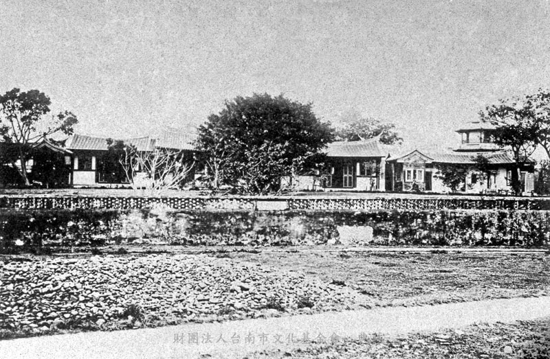 出自《台灣寫真帖》。原名「先師聖廟」,建於明永曆19年(1665)鳩工興建,隔年正式落成。除聖殿、兩廡外,旁設「明倫堂」,為講學之所,故稱「全台首學」。不過這座聖廟建造時間前後不到半年,一切都屬草創,格局簡陋,平房低矮。俟清人入台後,基於其規模「時非天朝大邦之體統」,乃先後加以修建,整個規模大概在乾隆年間知府蔣元樞任內達到極盛。嘉慶之後,格局極少變動,唯因地震天災屢有破壞,以致重修不斷。日治後,孔廟一度移作他用,包括日軍屯駐所、民政支所職員宿舍及公學校校舍等。直到大正6年(1917)公學校移往他處,孔廟才