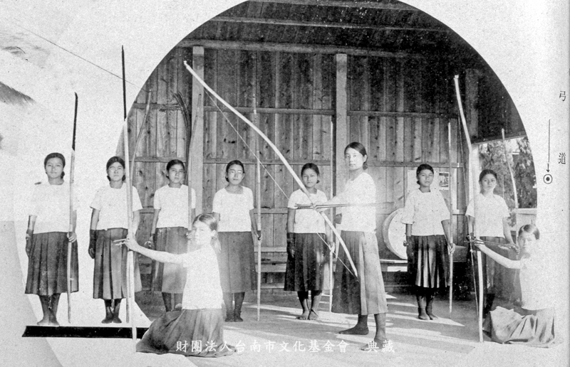 台南第二高等女學校學習射箭的女生,在1935年留下這張彎弓搭箭,英姿勃發的照片。當時學習「弓道」的女生,所用的弓,長逾兩公尺,比現代人所用的要大多了。(撰文:詹伯望)