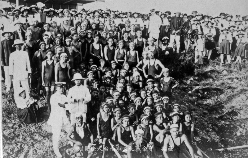 1925年,台南第一高等女學校在海邊舉行二英里長程游泳,出發前在安平河岸上合影。女生的泳裝自然要比男生保守,式連身式的,從這張照片可以看到不同的風情。(撰文:詹伯望)