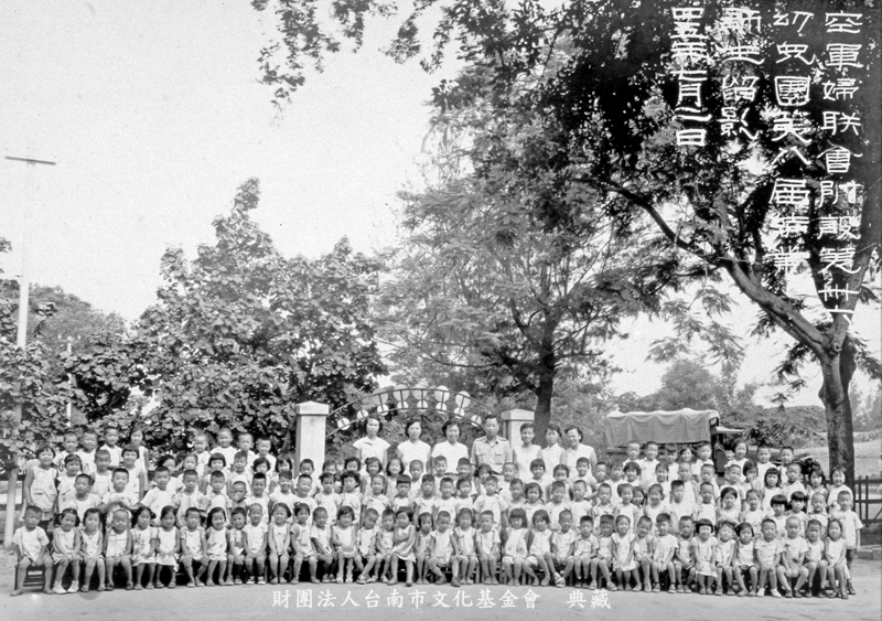 1956年7月,空軍婦聯會附設第36幼兒園第8屆結業式。這座幼稚園是附設在台南空軍子弟小學裡的。 空軍婦聯會其實應該稱為婦聯會空軍分會,是中華婦女反共抗俄聯合會之下的一個組織,而全國婦聯會的主委即是蔣宋美齡。當時由於台海情勢十分緊張,蔣夫人為了使三軍將士沒有後顧之憂,倡導在眷村設立幼稚園,國防部當然傾力協助,空軍除了在空軍子弟小學附設幼稚園,供水交社眷村的兒童就讀外,也在大林新村和崇誨新村各社一座幼稚園。(撰文:詹伯望)