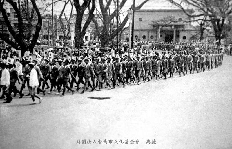 1940年11月10日,州立台南第二中學校的師生,手持日本國旗和有納粹標誌的德國國旗到街上遊行,慶祝日、德、義三國締結軸心同盟。 歐戰在1939年爆發時,日本早已在中國取得優勢。40年夏天德國攻佔荷、比、盧、法等國,而英國亦飽受壓力,以致無暇顧及他們在亞洲的殖民地,像中南半島、印尼、馬來西亞﹑新加坡等,形成權力真空,,更予日本可稱之機。40年9月下旬,日本進入中南半島的北部童年27日,德、義、日在柏林簽訂三邊協定,組成軸心同盟,日本承認德、義在歐洲建立新秩序;德、義則承認日本在太平洋地區建立新秩序的權利,