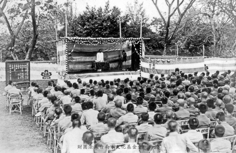 為了歡迎新生入學台南師院還舉行了一場園遊會,時間是1935年3月。畫面最左邊是園遊會的程序表右側是台南師範校徽,在櫻花中間崁一「師」字,代表以教師為終身的職志。(撰文︰詹伯望)