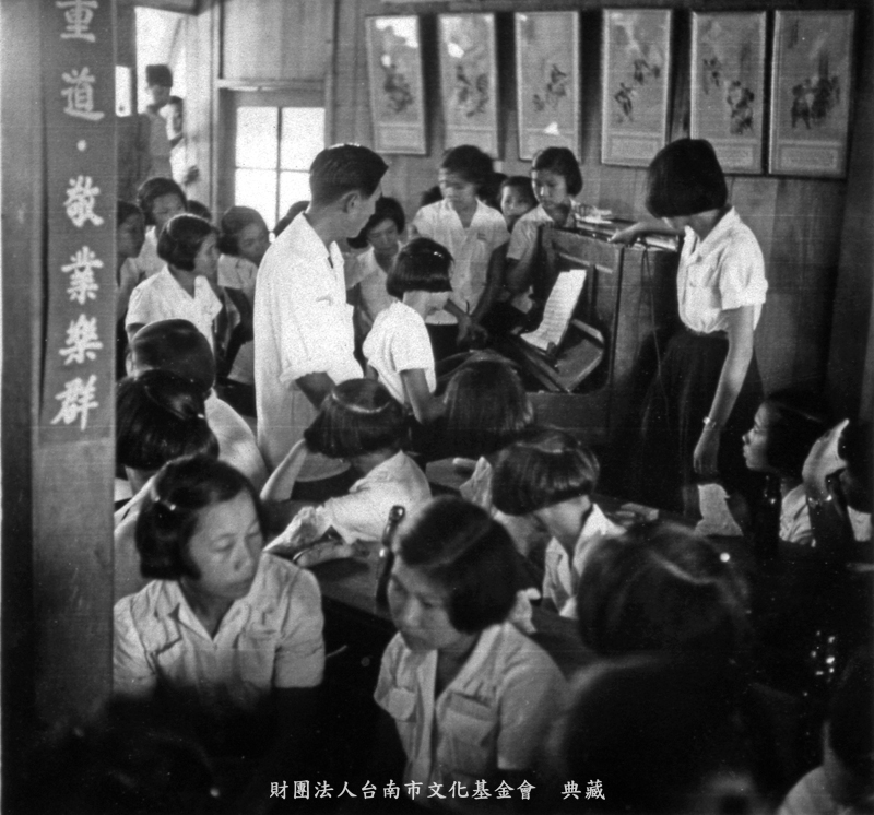 1954年7月。光華女中的在校生彈琴歡送第九屆畢業生。窄小的禮堂雖然有些擁擠,但大家為成一圈,似乎更顯親密,更有些離情別意。(撰文:詹伯望)
