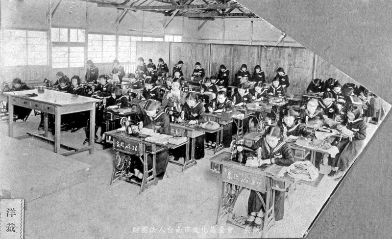 和敬女學校的前身是「台南家政裁縫講習所」,所以對女生的裁縫訓練特別重視,這是該校1939年改制以後的洋裁課上課情形,光看每人一部縫紉機的陣仗,就很驚人了。該校當時與日本一家裁縫學校有合作關係,學生畢業後若在赴日在裁縫學校深造一年,返台後即可取得小公學校專科教員的資格。(撰文:詹伯望)